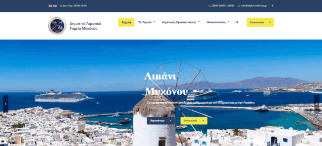 Το Δημοτικό Λιμενικό Ταμείο Μυκόνου ως φορέας διοίκησης και εκμετάλλευσης λιμένων, σας καλωσορίζει στην επίσημη ιστοσελίδα του. Στόχος μας είναι η πληροφόρηση σε θέματα που αφορούν τις λιμενικές ζώνες, τις εγκαταστάσεις των δυο λιμένων και τις παροχές υπηρεσιών μας στους κατοίκους της νήσου Μυκόνου, όπως επίσης και σε όλους τους επισκέπτες μας.